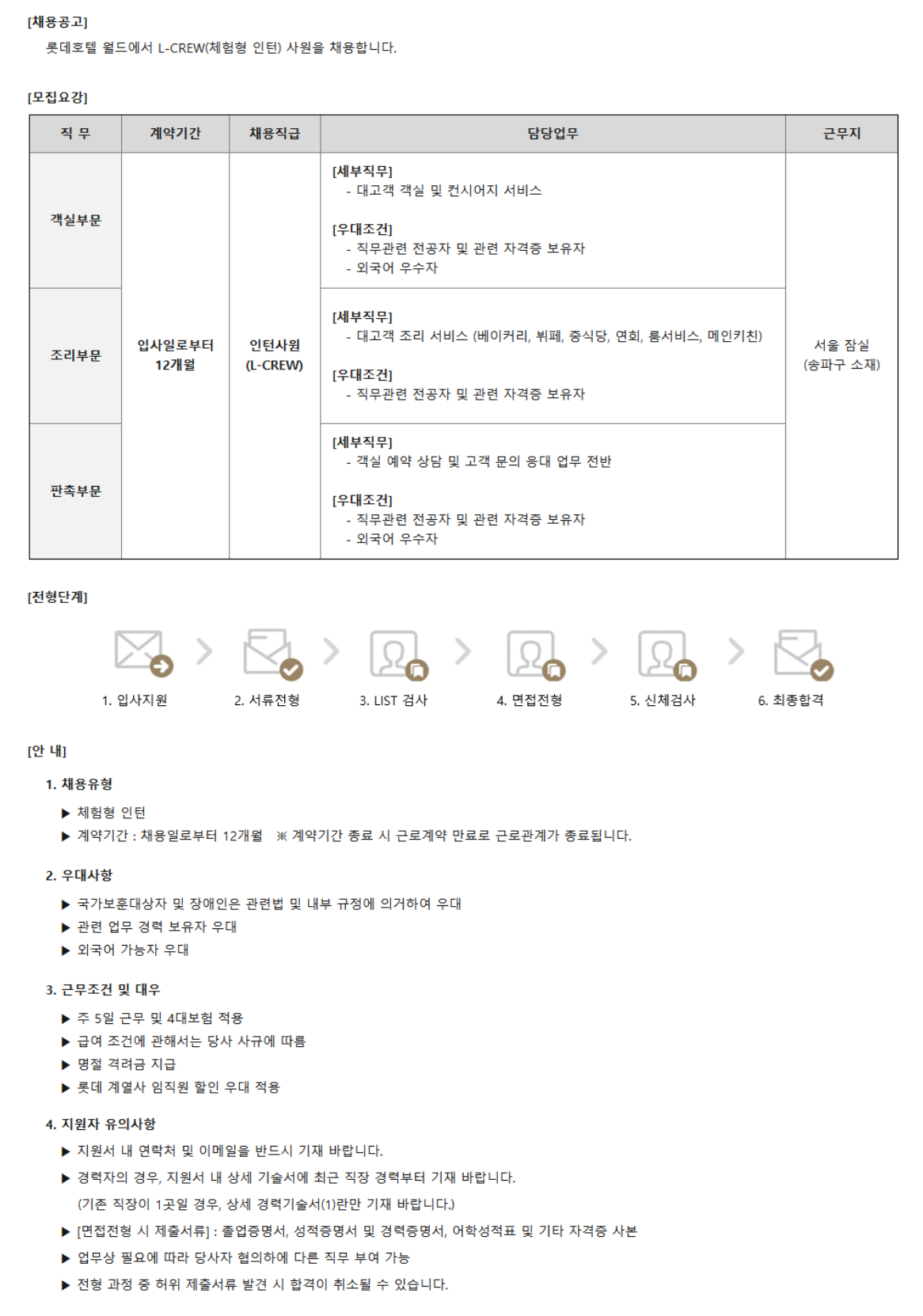 [롯데호텔] 월드 L-CREW (체험형 인턴) 채용