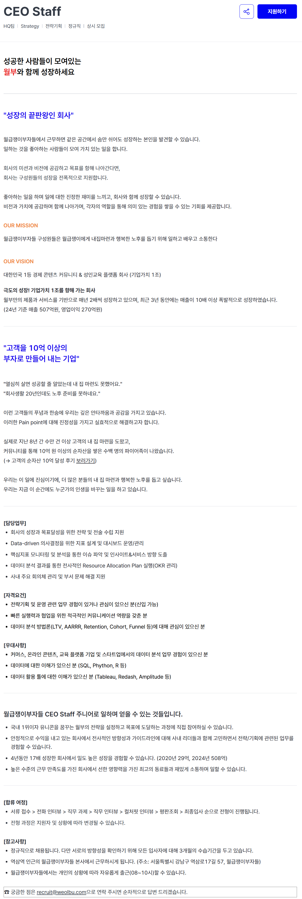 - 전략기획 및 운영 관련 업무 경험이 있거나 관심이 있으신 분(신입 가능)