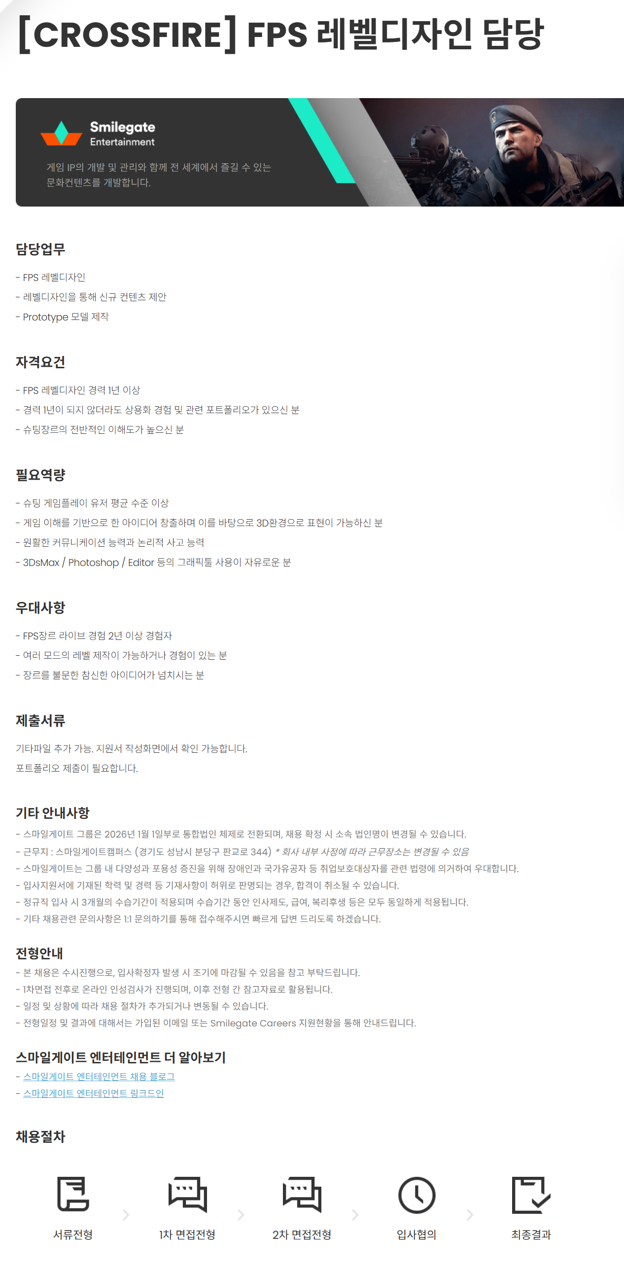 [스마일게이트엔터테인먼트] [CROSSFIRE] FPS 레벨디자인 담당