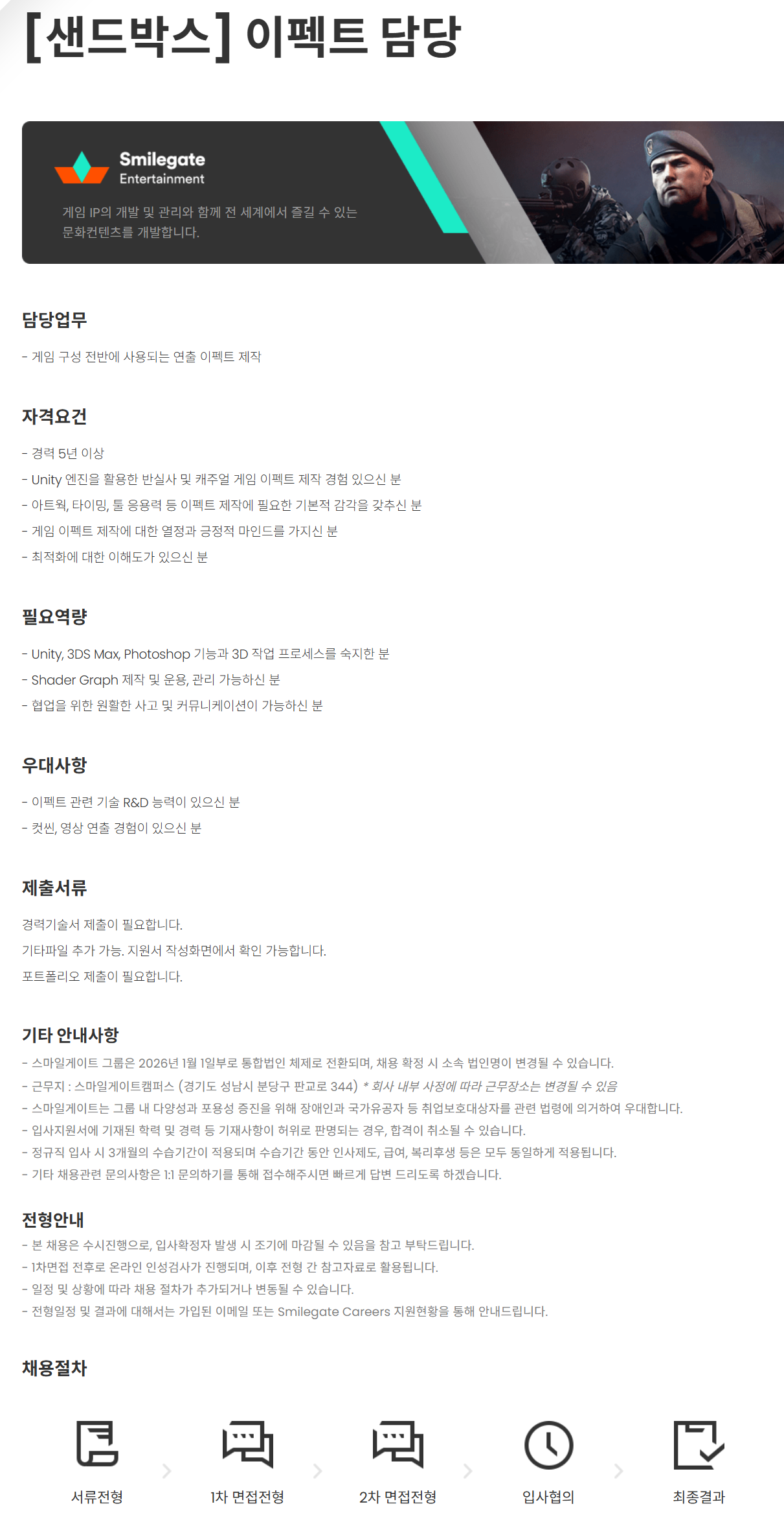 [스마일게이트엔터테인먼트] [샌드박스] 이펙트 담당
