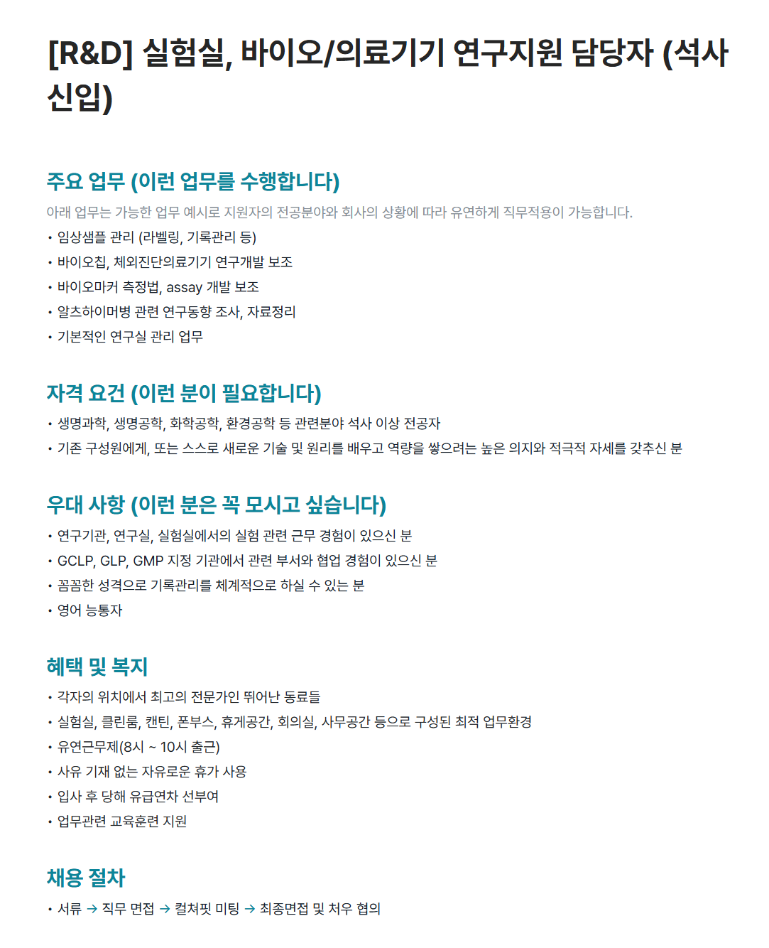 [브레디스헬스케어] [R&D] 실험실, 바이오/의료기기 연구지원 담당자