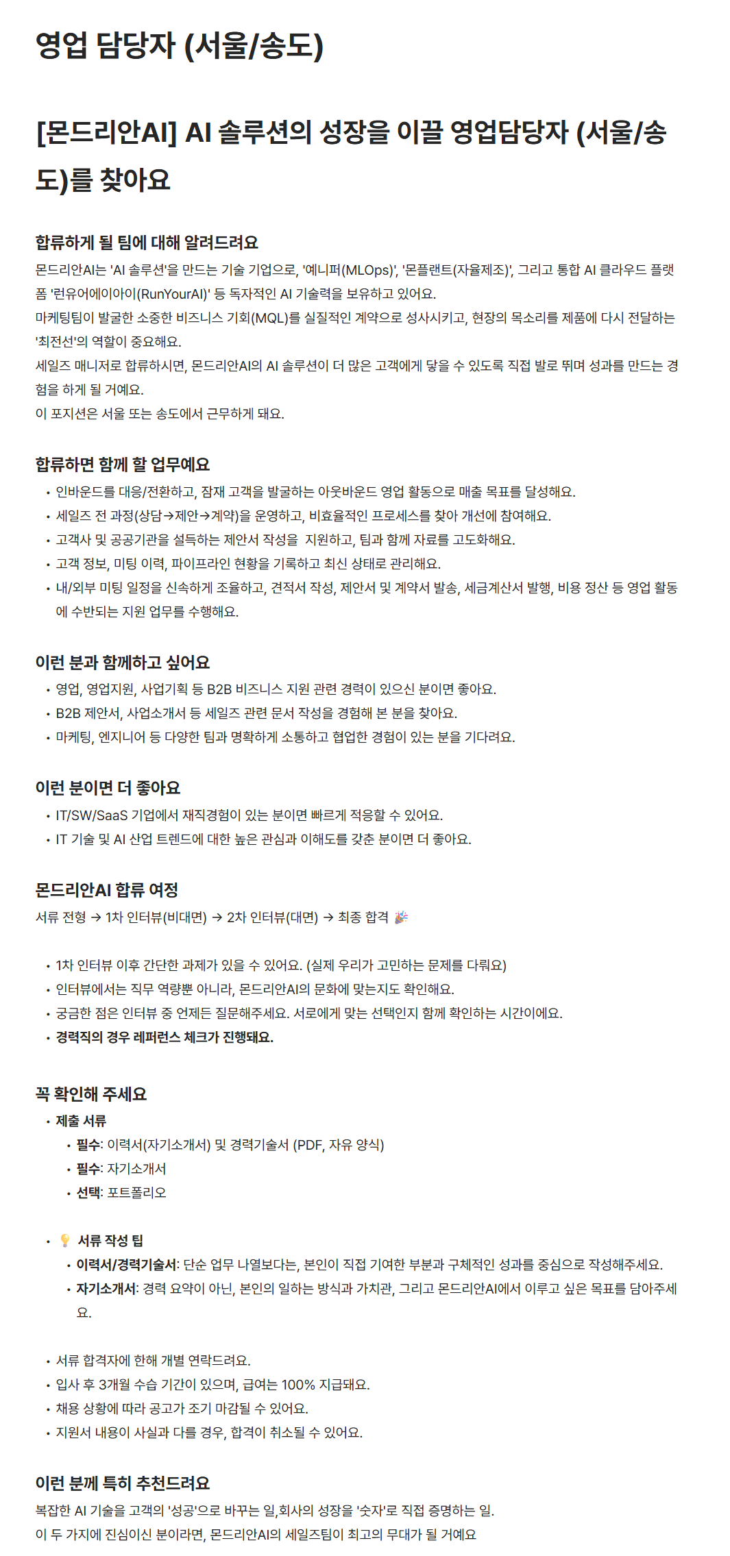 [몬드리안AI] 영업 담당자 (서울/송도)