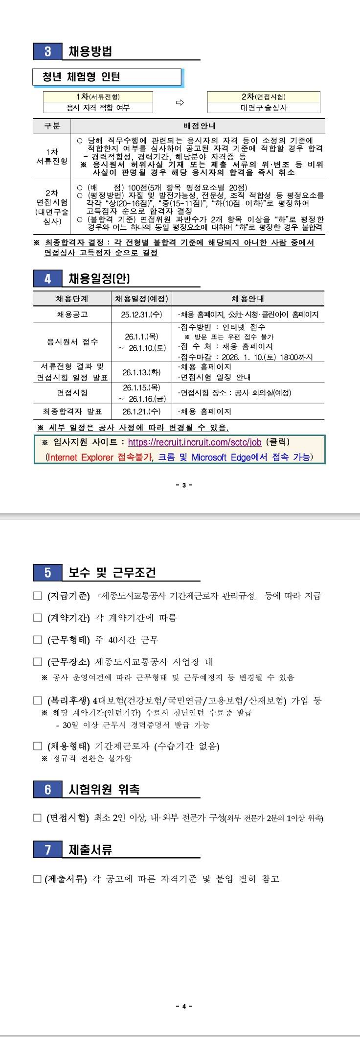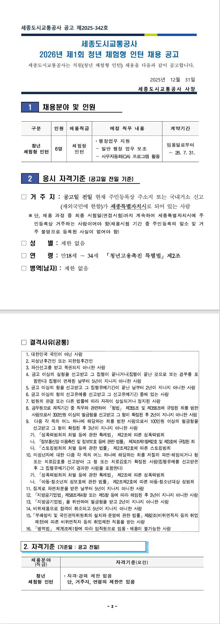 [세종도시교통공사] 2026년 제1회 청년 체험형 인턴 채용
