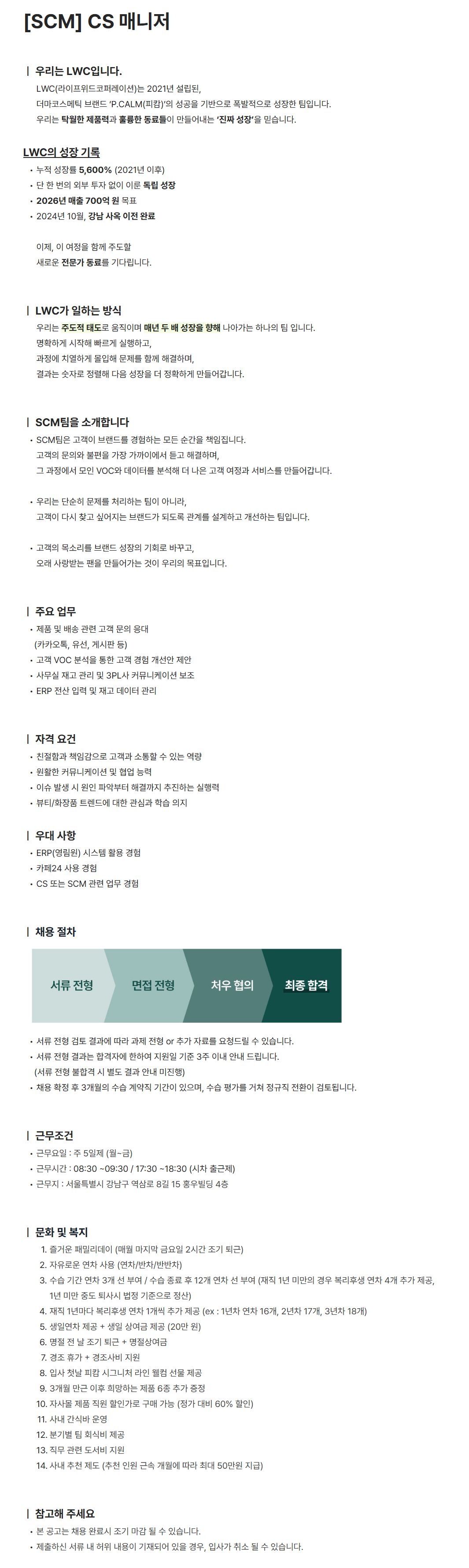 [(주)라이프위드코퍼레이션] [SCM] CS 매니저