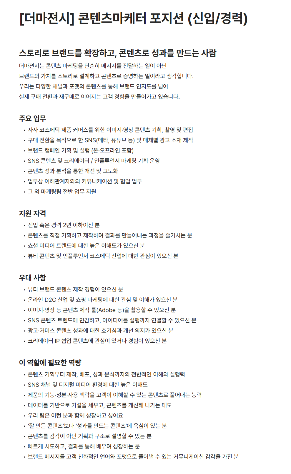 [비엠스마일] [더마젼시] 콘텐츠마케터 포지션 (신입/경력)