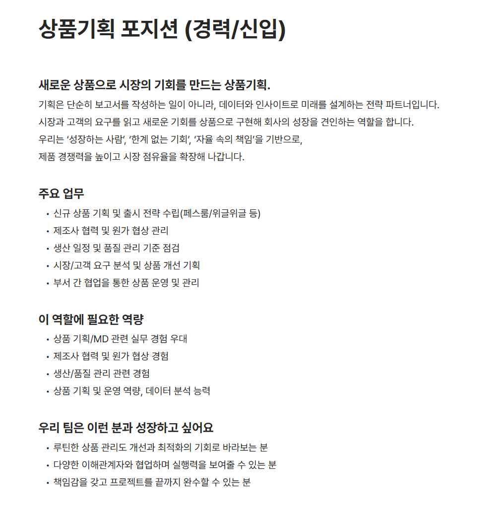 - 상품 기획 및 운영 역량, 데이터 분석 능력