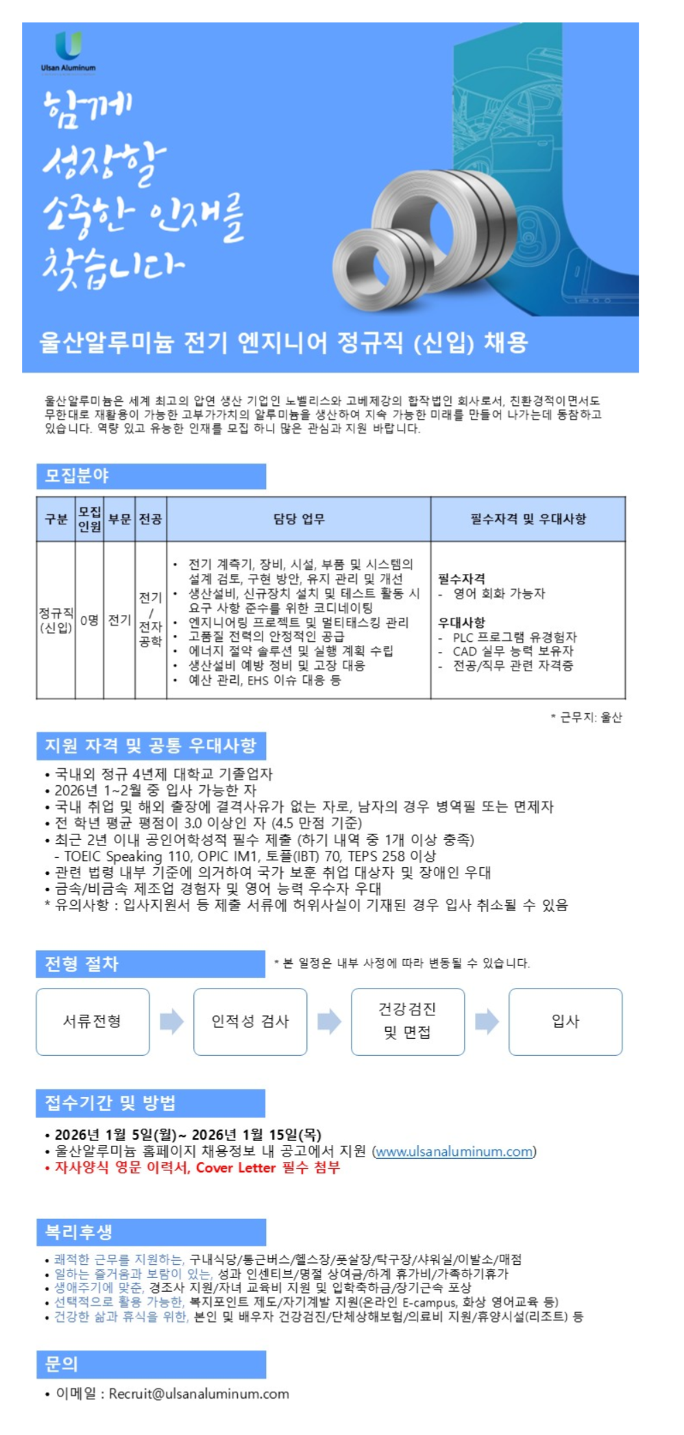 - 국내외 학사 졸업자 (26년 1~2월 중 입사 가능자)