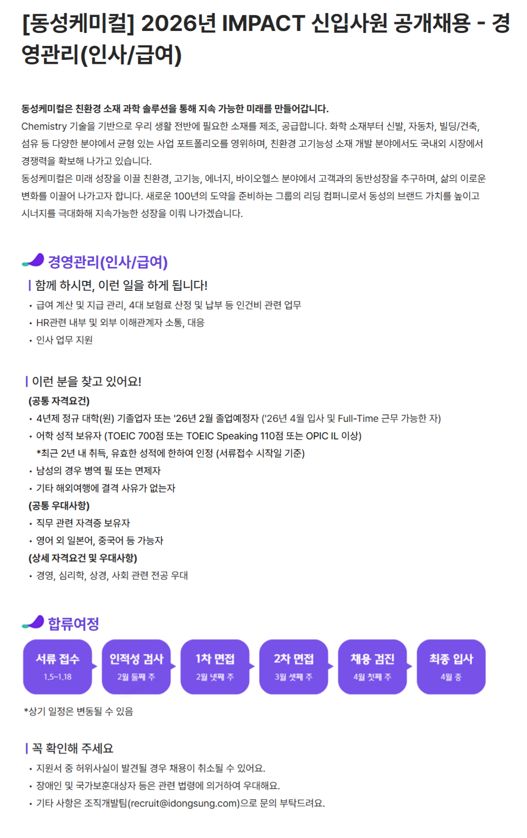 - 급여: 회사 내규에 따름