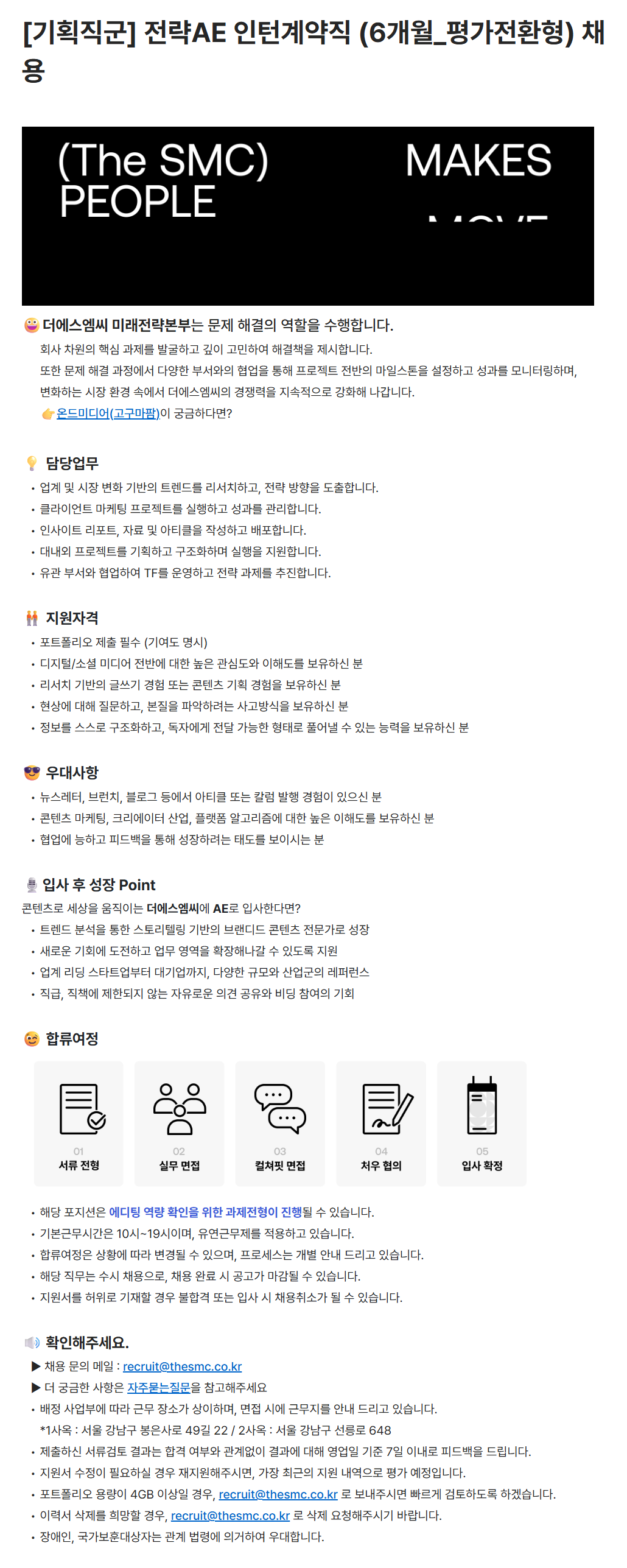 [더에스엠씨] [기획직군] 전략AE 인턴계약직 (6개월_평가전환형) 채용