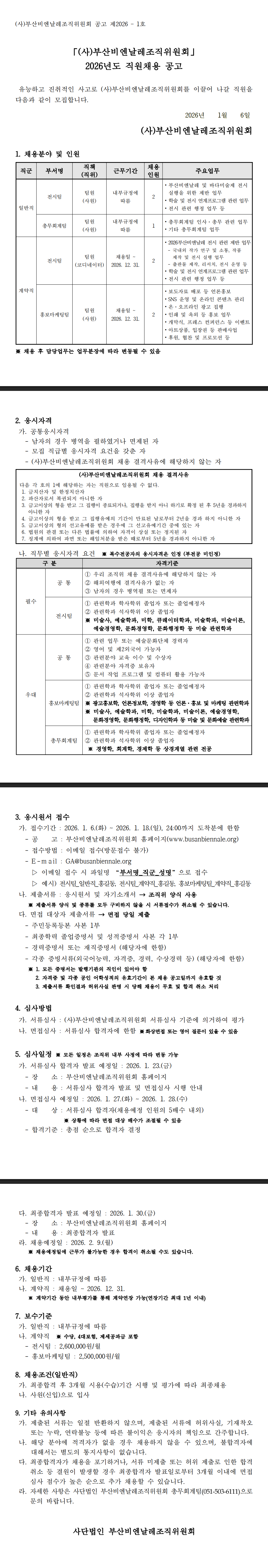 [부산비엔날레조직위원회] 2026년도 직원채용
