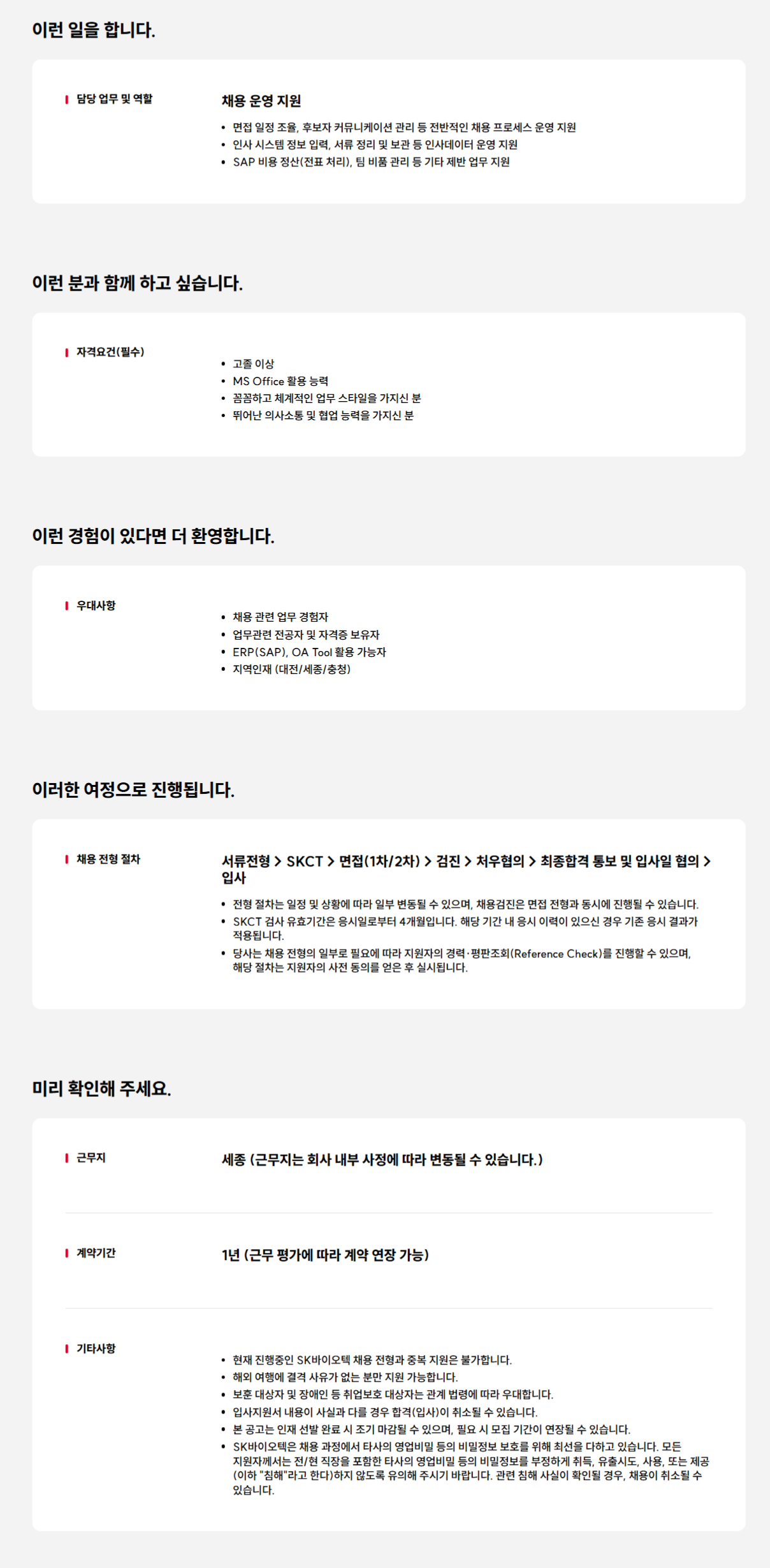 - 채용 운영 지원 (면접 일정 조율, 후보자 커뮤니케이션 관리 등)