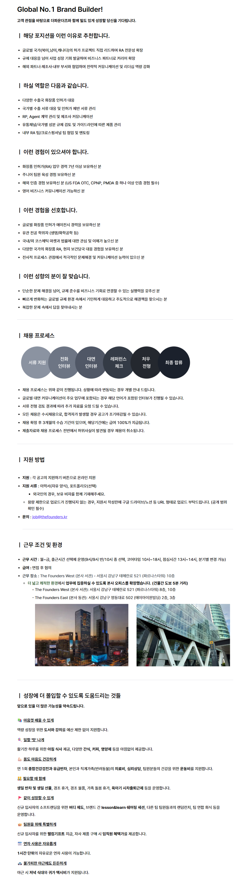 #RA #RegulatoryAffairs #화장품인허가 #글로벌RA #해외인허가 #화장품규제 #수출인허가 #국가별규제 #성분규제 #USFDA #FDAOTC #CPNP #PMDA #해외인증 #RP관리 #에이전트관리 #제조사커뮤니케이션 #글로벌화장품 #RA매니저 #시니어RA