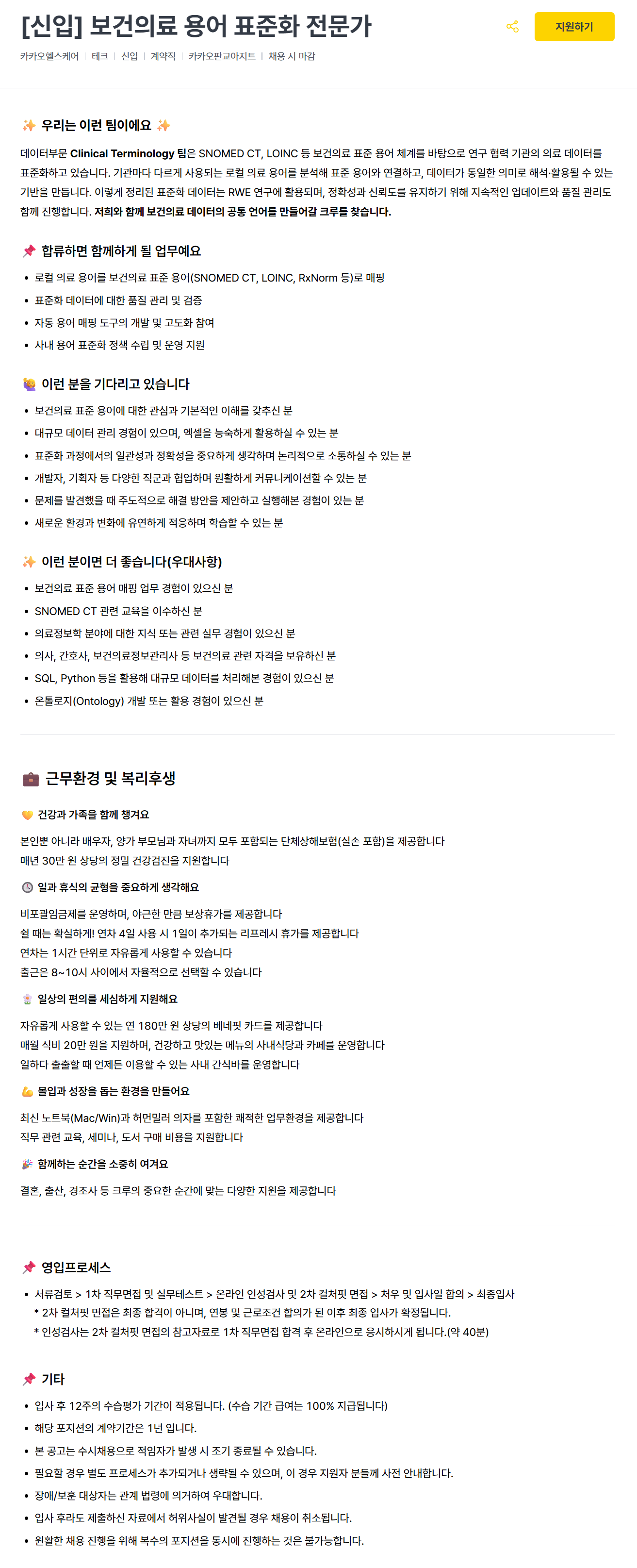 [카카오헬스케어] [신입] 보건의료 용어 표준화 전문가