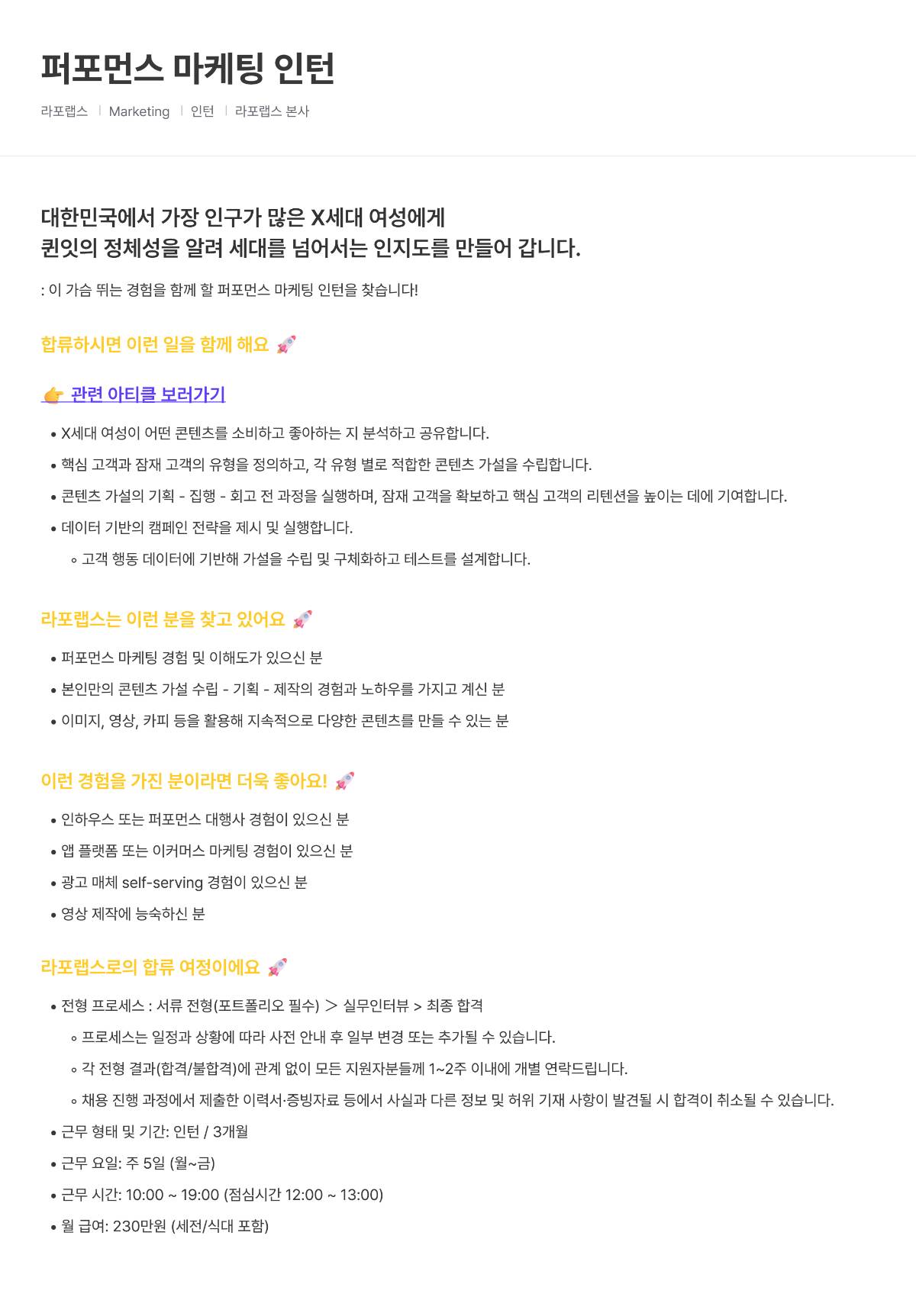 [라포랩스/퀸잇] 퍼포먼스 마케팅 인턴