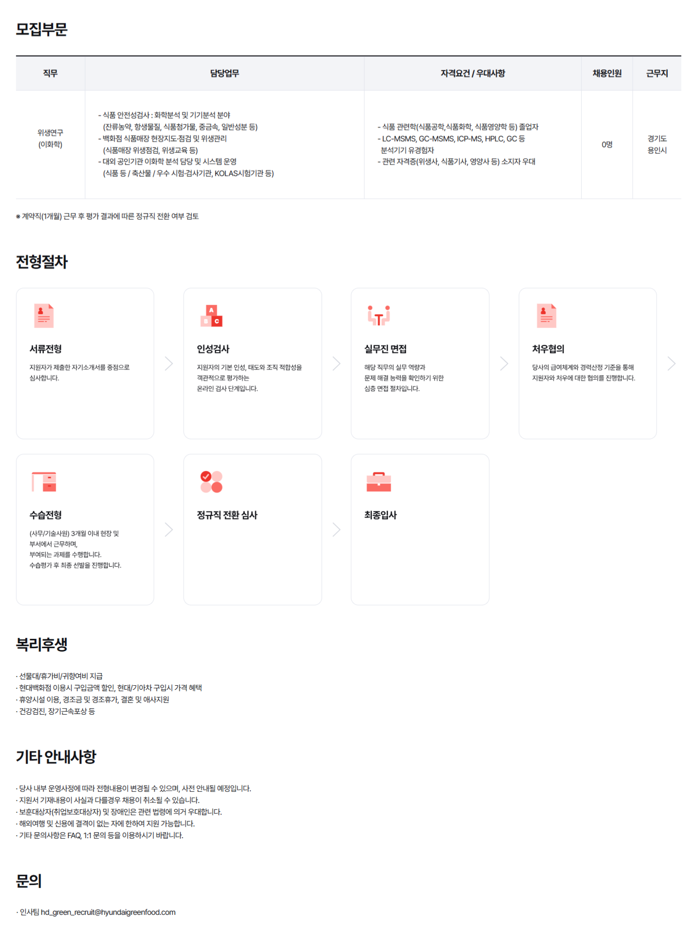 - 식품 안전성검사 : 화학분석 및 기기분석 분야
