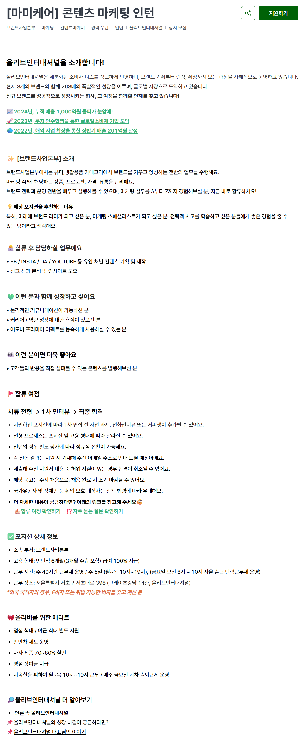 [올리브인터내셔널] [마미케어] 콘텐츠 마케팅 인턴