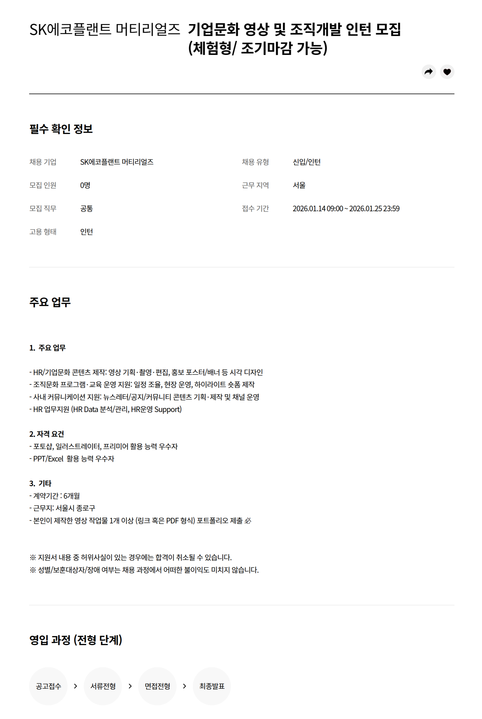 - HR/기업문화 콘텐츠 제작: 영상 기획·촬영·편집, 홍보 포스터/배너 등 시각 디자인