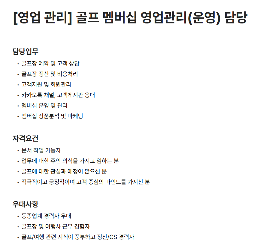 - 골프/여행 관련 지식이 풍부하고 정산/CS 경력자