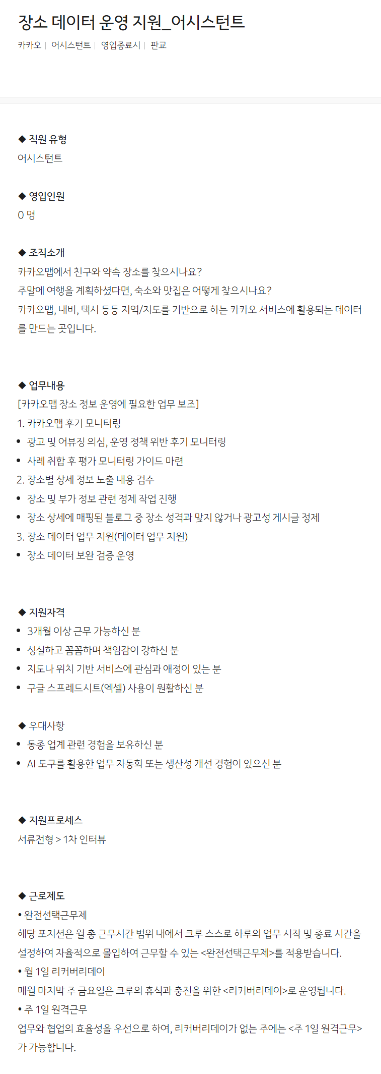[카카오] 장소 데이터 운영 지원_어시스턴트