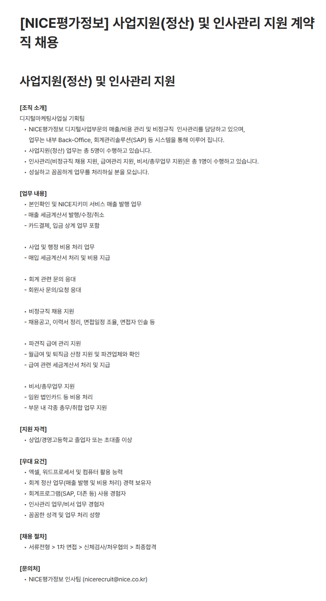 인사관리 업무/비서 업무 경험자