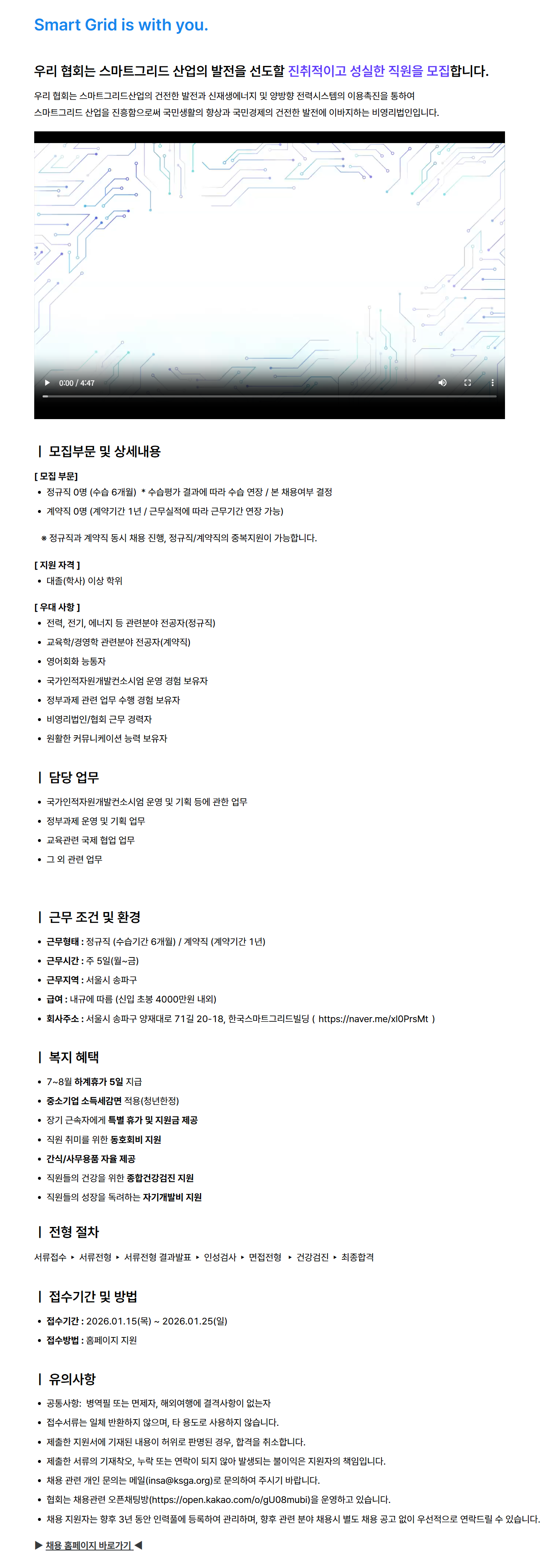[한국스마트그리드협회] 신입/경력 채용 공고
