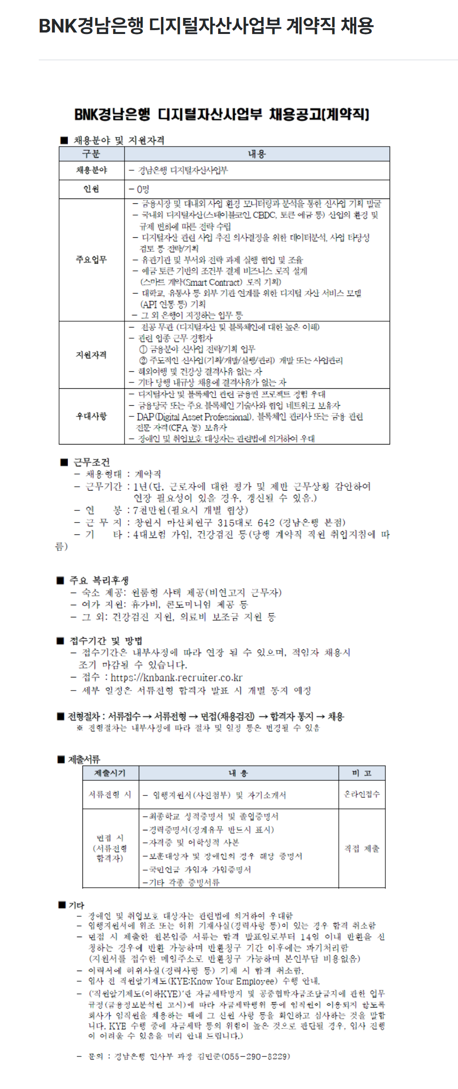 [BNK경남은행] 디지털자산사업부 계약직 채용