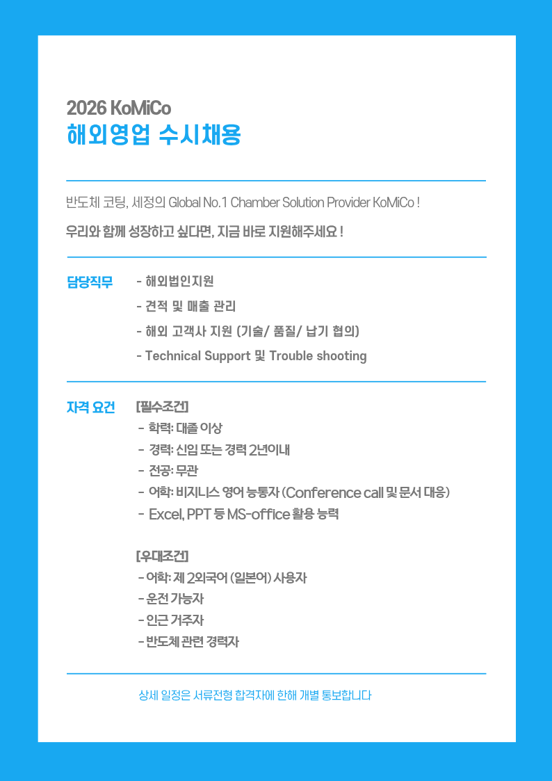 해외 법인 지원 견적 및 매출 관리 해외 고객사 지원 테크니컬 서포트 및 트러블 슈팅