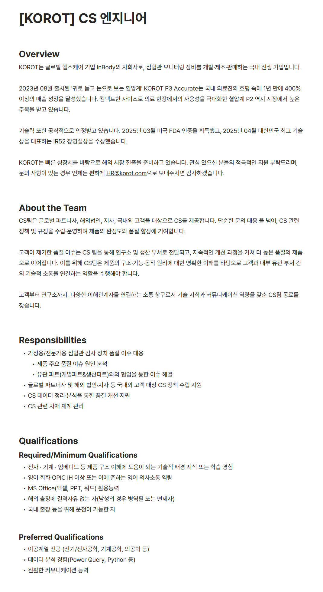 - 이공계열 전공 (전기/전자공학, 기계공학, 의공학 등)