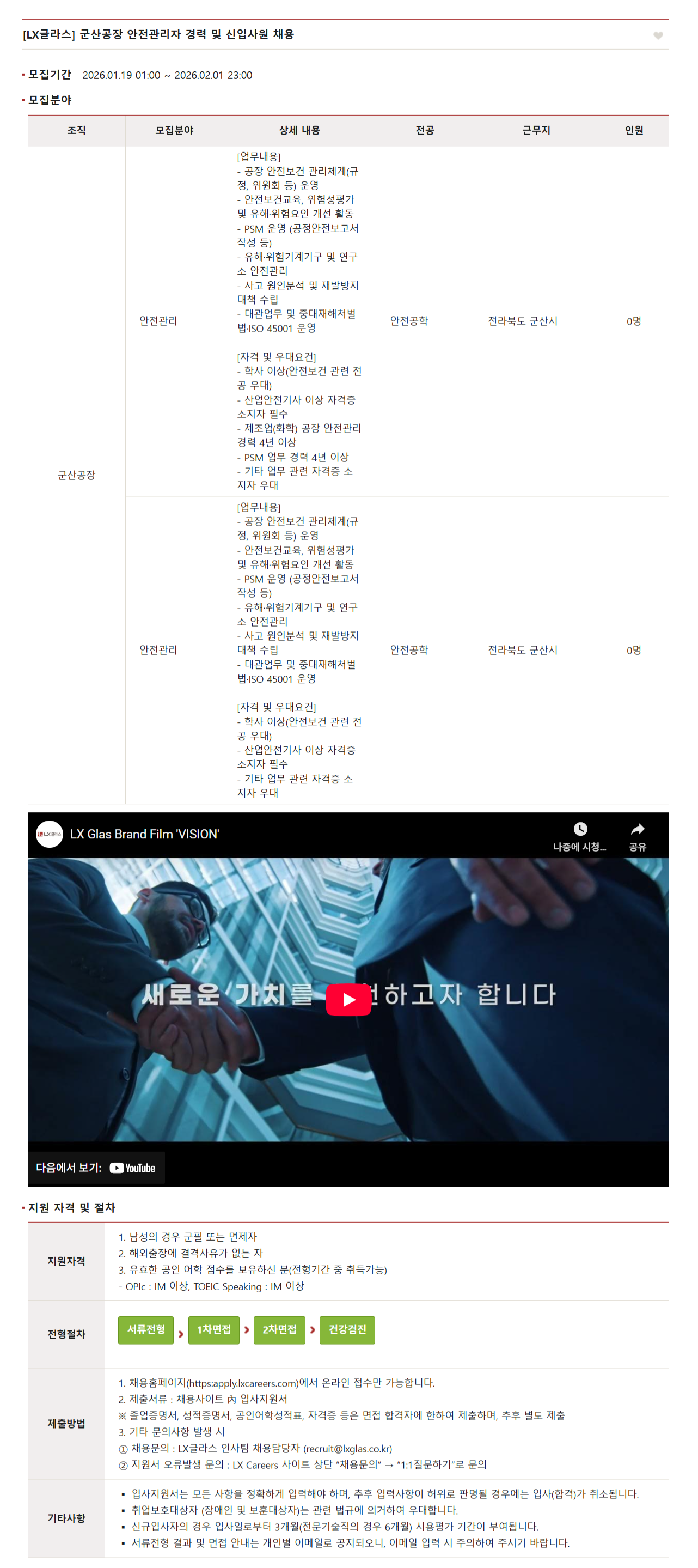 - 제조업(화학) 공장 안전관리 경력 4년 이상