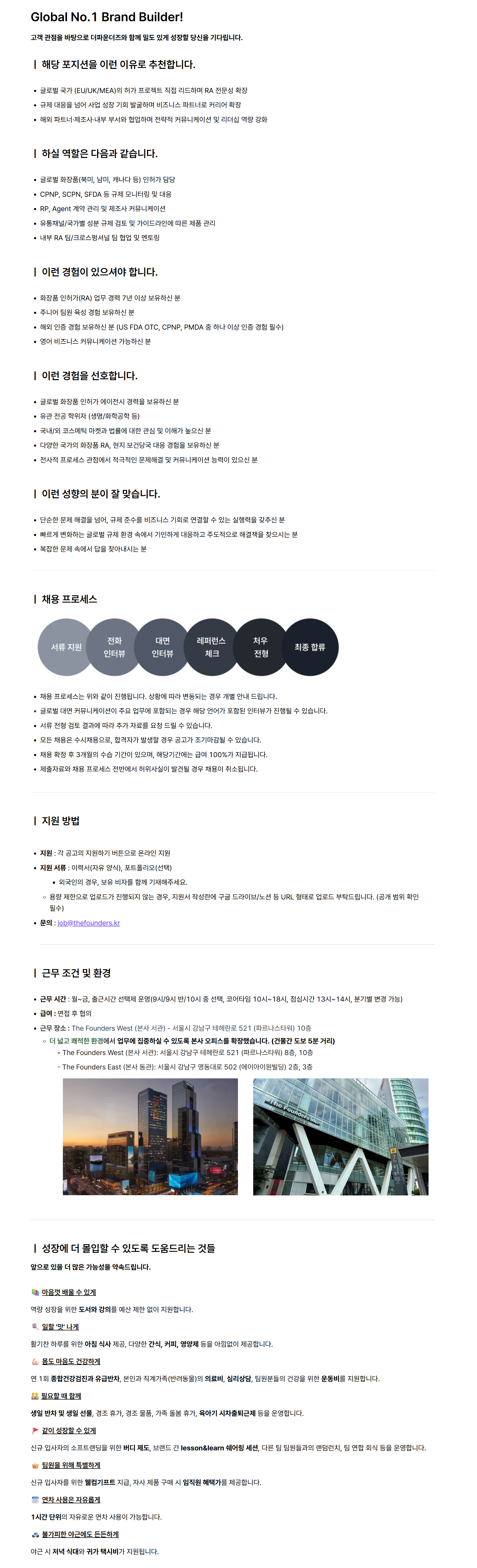 [더파운더즈] 글로벌 화장품 인허가 RA(Regulatory Affairs) Sr. 매니저 (EU/UK)