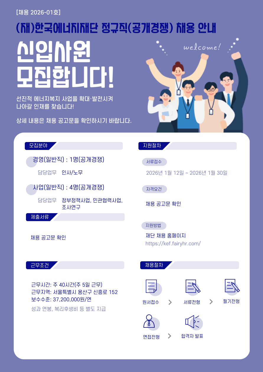 KEF 인재상 ① 따뜻한 마음을 가진 사람, ② 전문성을 갖춘 사람, ③ 미래지향적인 사람