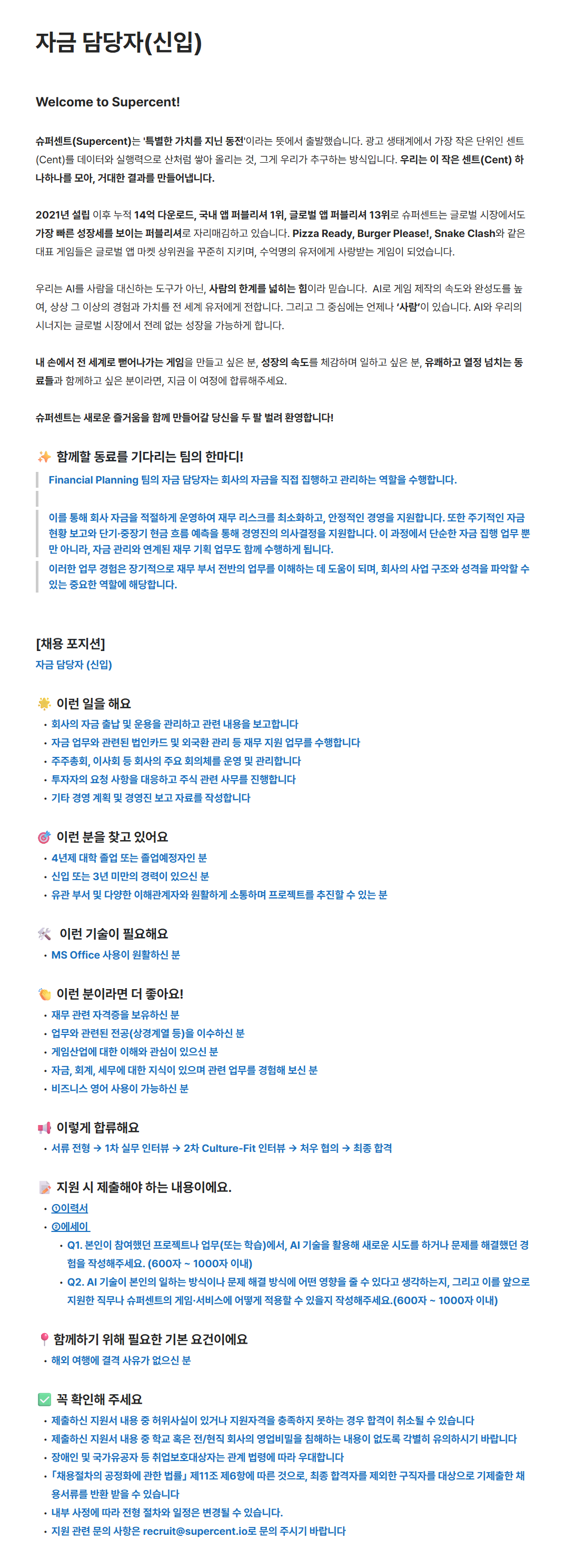 [슈퍼센트] 자금 담당자(신입)