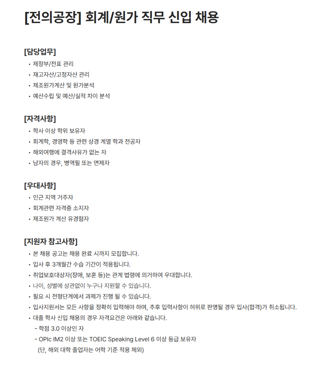 - 회계학, 경영학 등 관련 상경 계열 학과 전공자