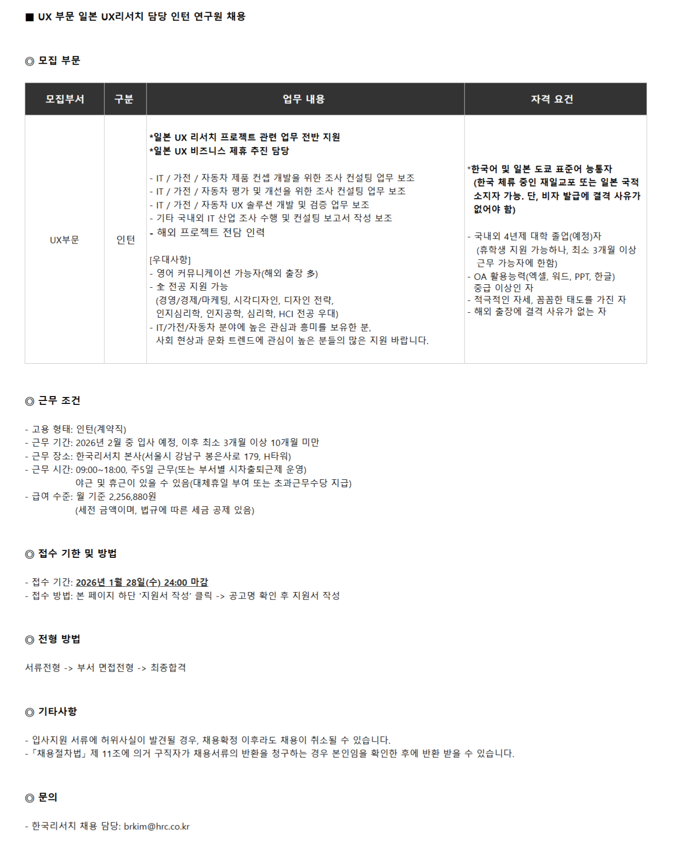 - 全 전공 지원 가능 (경영/경제/마케팅, 시각디자인, 디자인 전략, 인지심리학, 인지공학, 심리학, HCI 전공 우대)