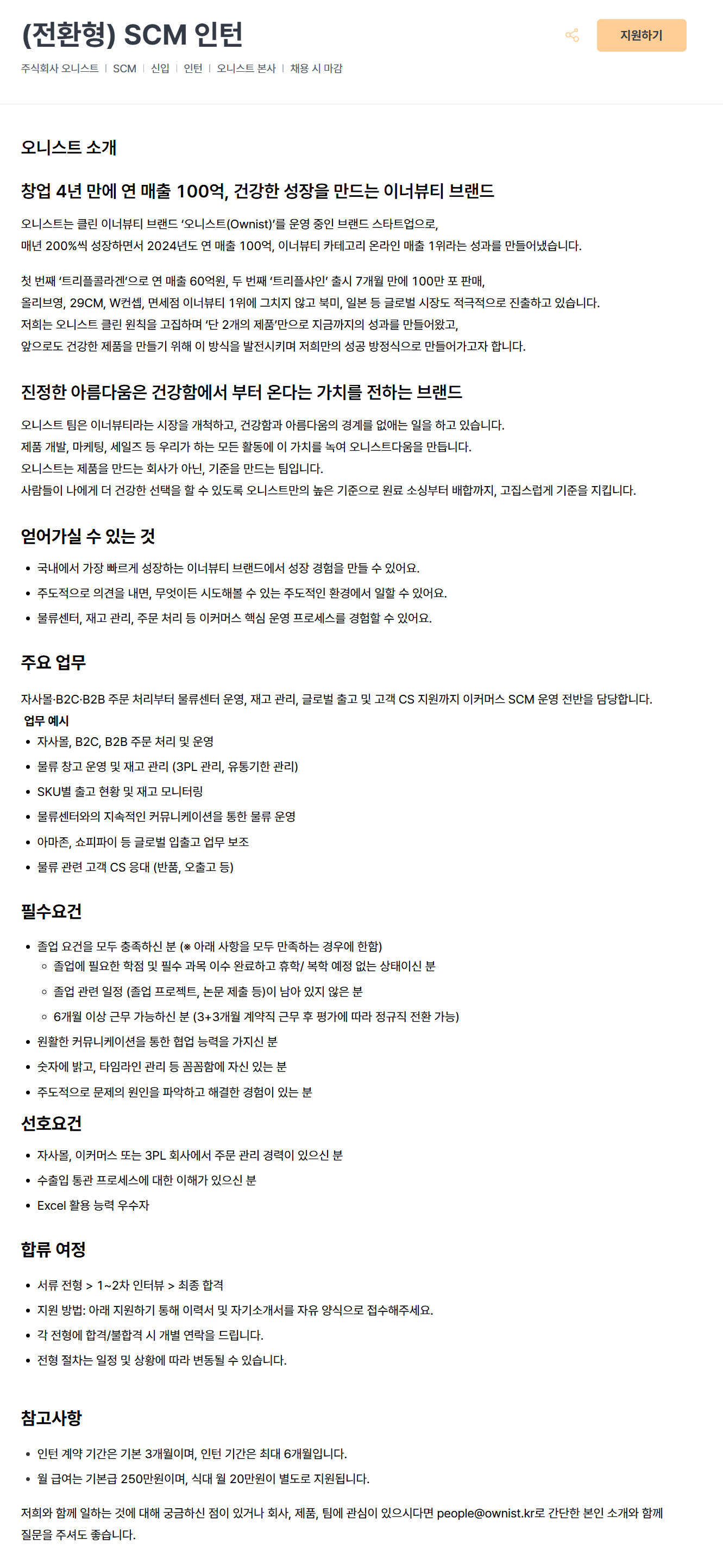 [오니스트] (전환형) SCM 인턴