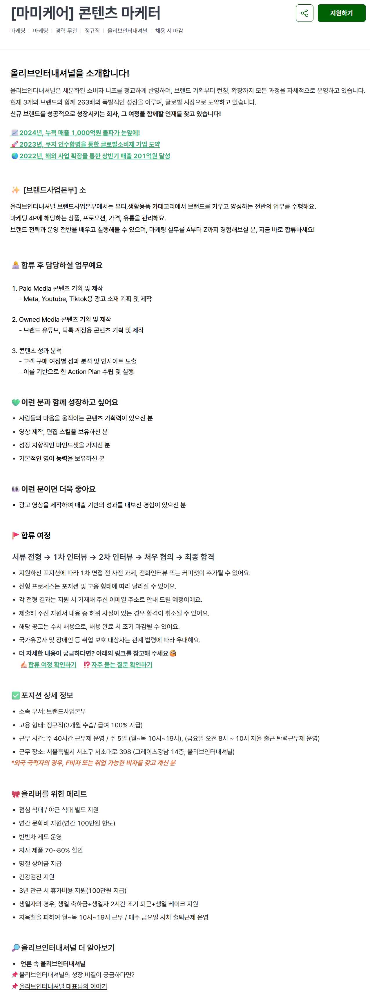 [올리브인터내셔널] [마미케어] 콘텐츠 마케터