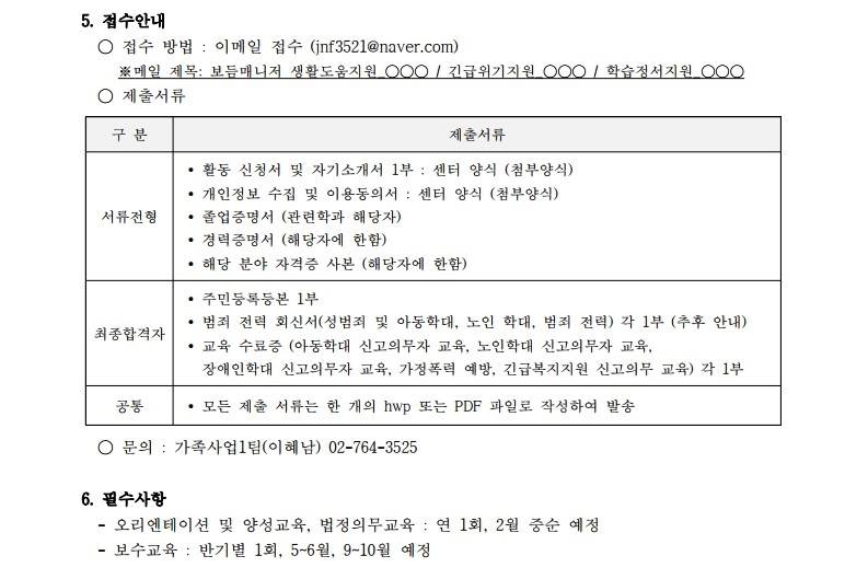 2026년 온가족보듬사업 활동 인력 모집 공고