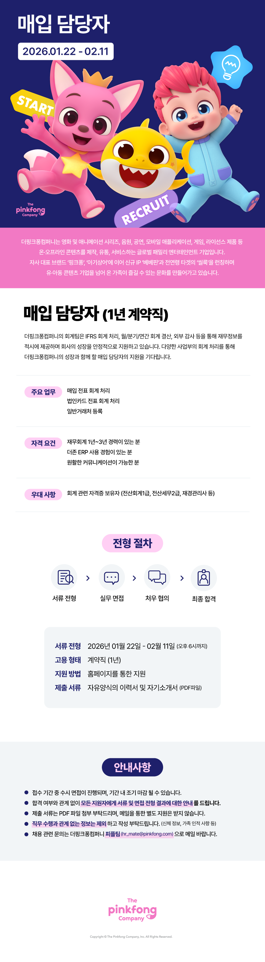 [더핑크퐁컴퍼니] 매입 담당자 (1년 계약직)