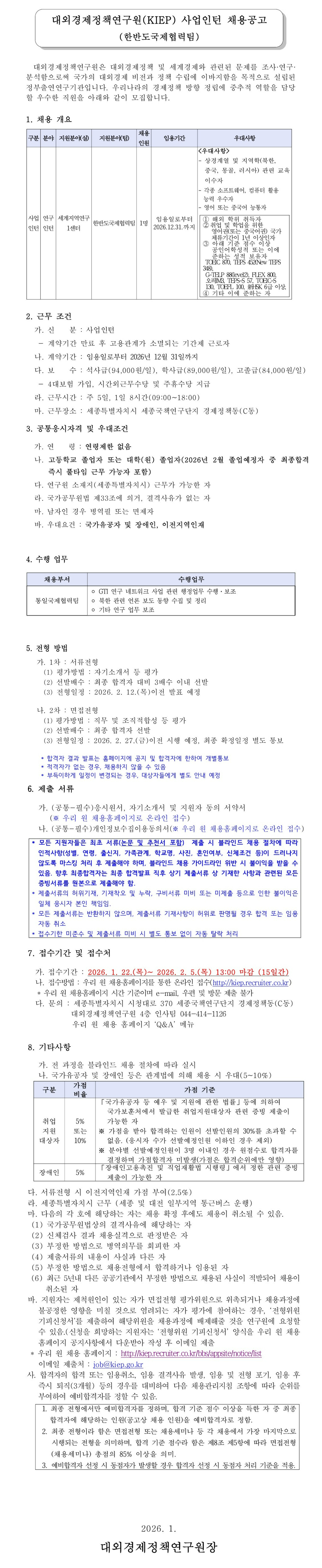 [대외경제정책연구원] KIEP 사업인턴(한반도국제협력팀) 채용 공고