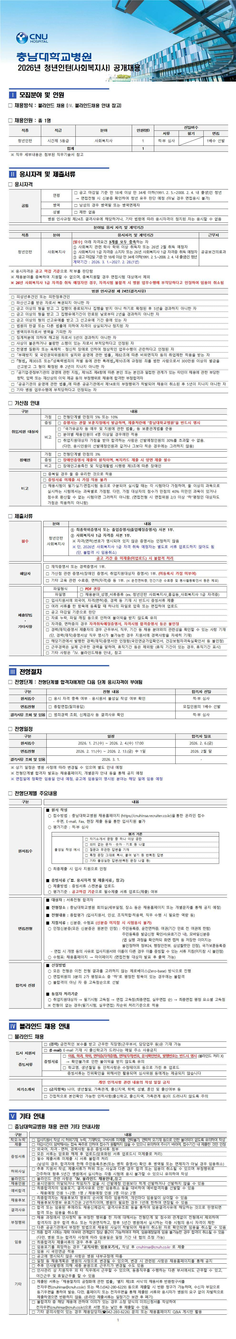 [충남대학교병원] 2026년 2월 청년인턴 사회복지사 직원 채용공고