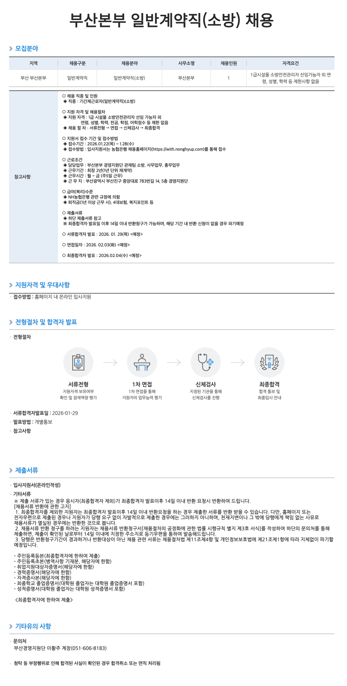 [NH농협은행] 부산본부 일반계약직(소방) 채용