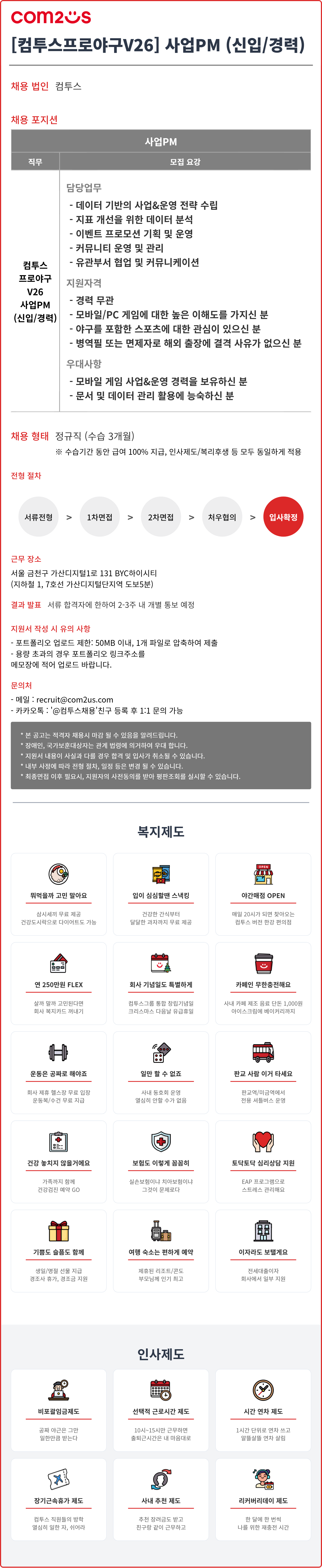 [컴투스] [컴투스프로야구V26] 사업PM (신입/경력)