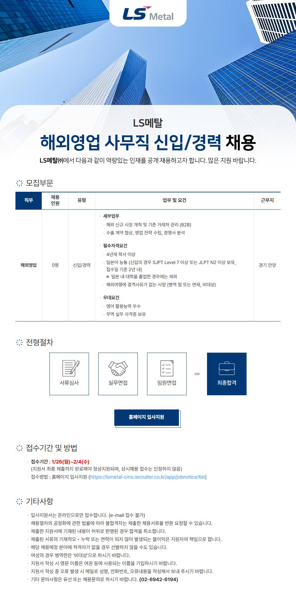 - 입사지원서 내 허위 사실이 발견될 경우 채용이 취소될 수 있습니다.