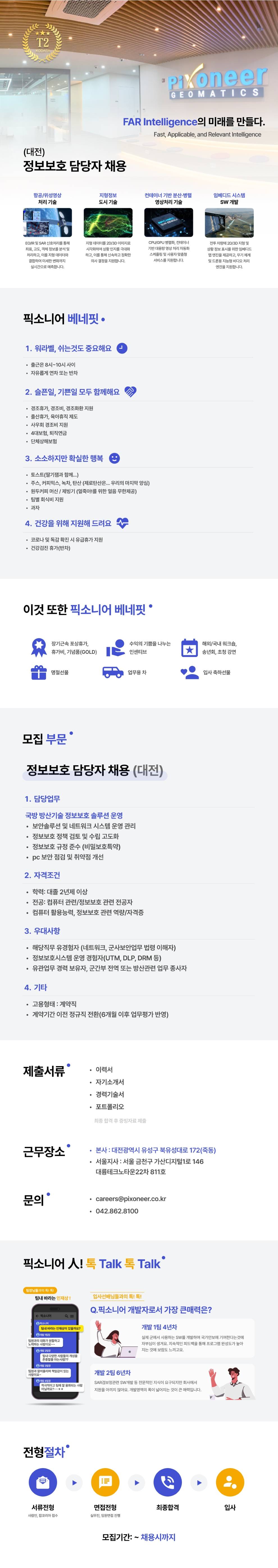 - 자격요건 - 컴퓨터/정보보호 관련 초대졸 이상 - 컴퓨터 활용능력, 정보보호 관련 역량/자격증 보유자