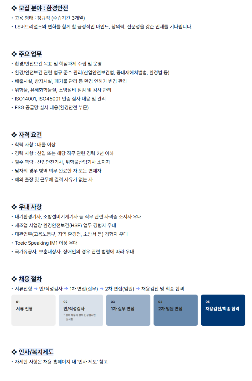 - 제조업 사업장 환경안전보건 업무 경험자