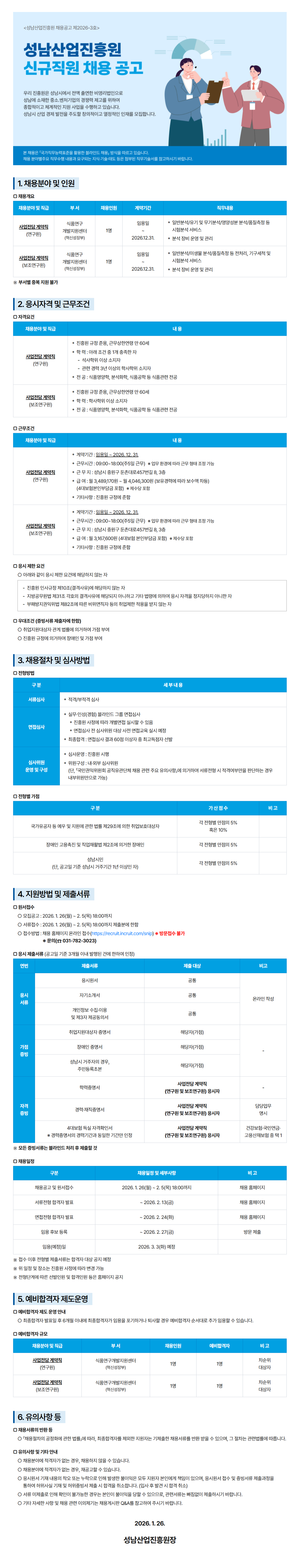 - 학력: 석사학위 이상 소지자 또는 관련 경력 3년 이상의 학사학위 소지자 - 전공: 식품영양학, 분석화학, 식품공학 등 식품관련 전공
