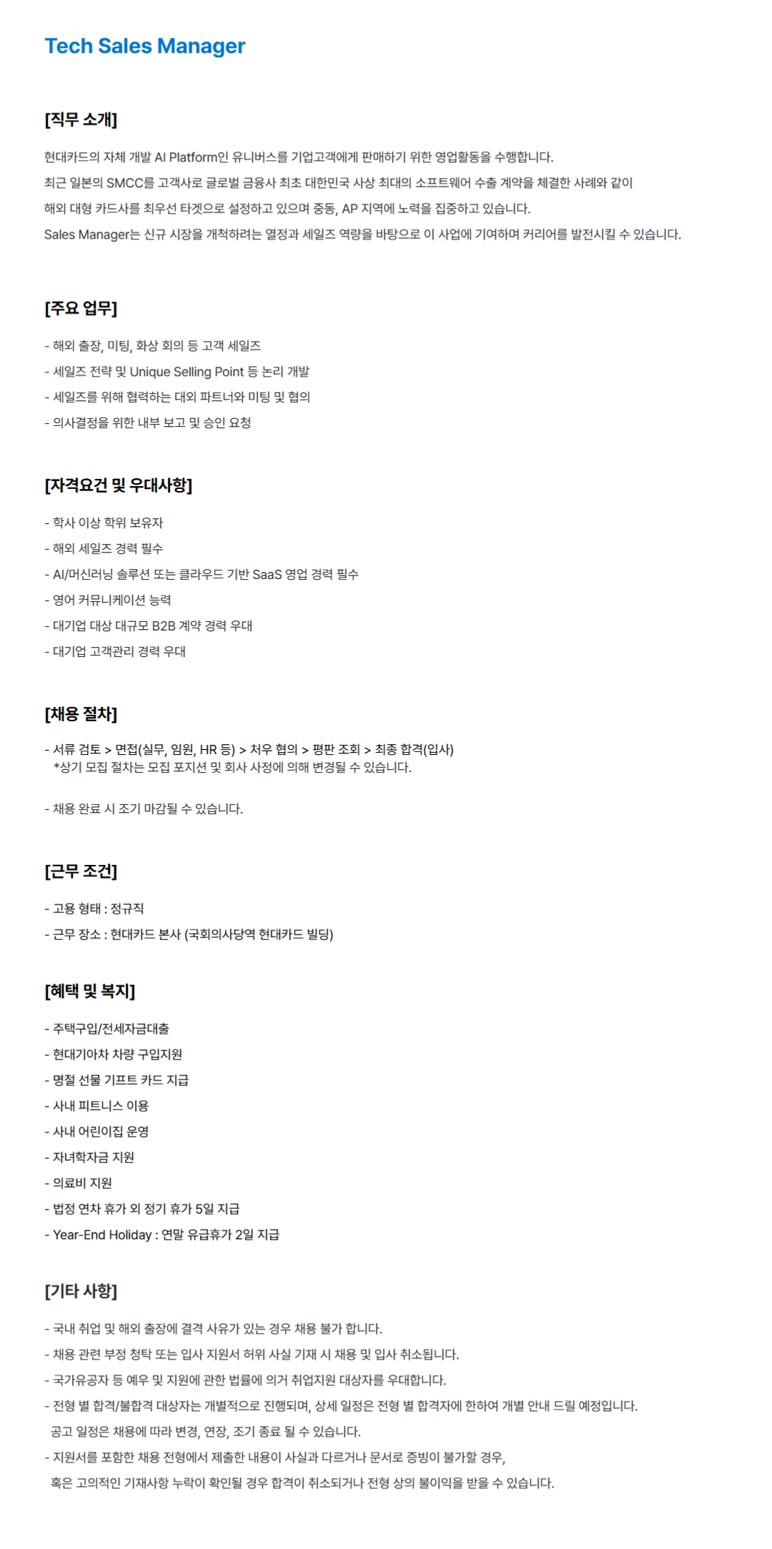[현대카드] Tech Sales Manager(신입)