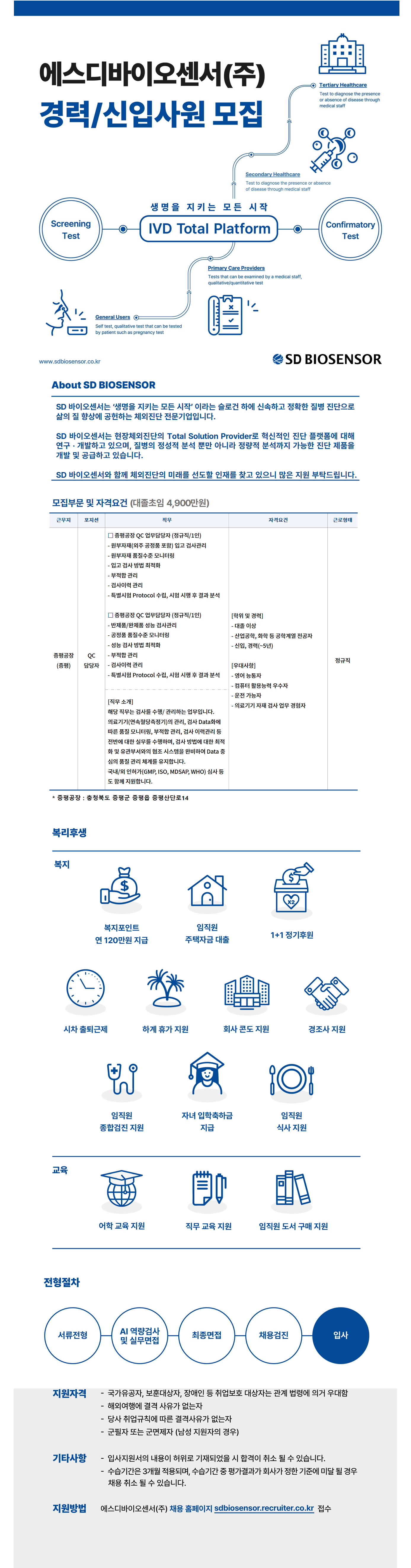 [SD바이오센서][1월/신입경력/증평] QC 담당자 채용