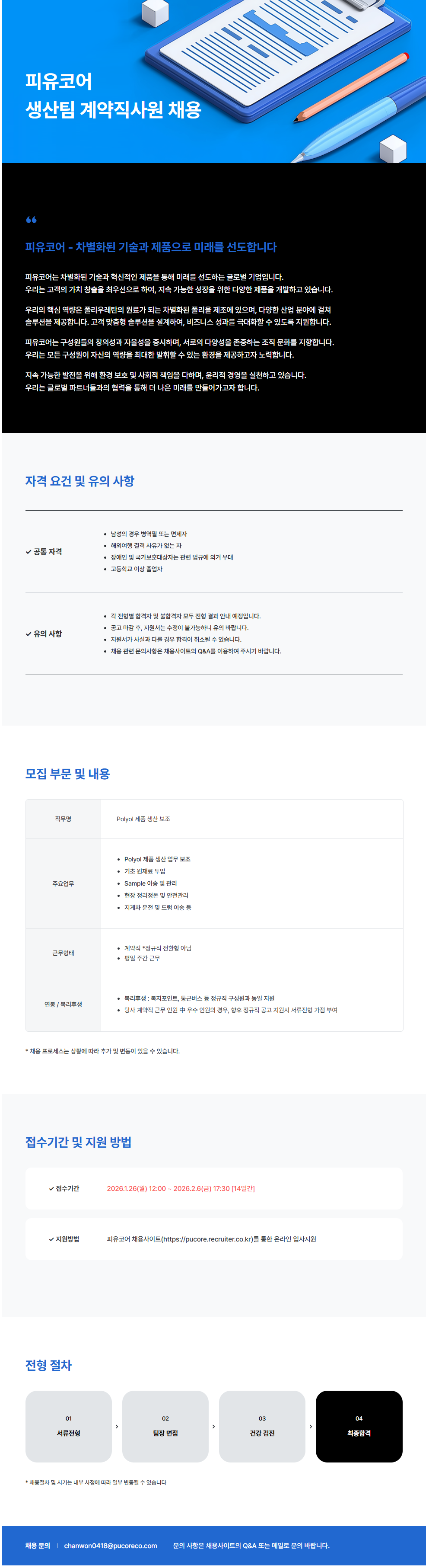[피유코어] 생산팀 계약직사원 채용