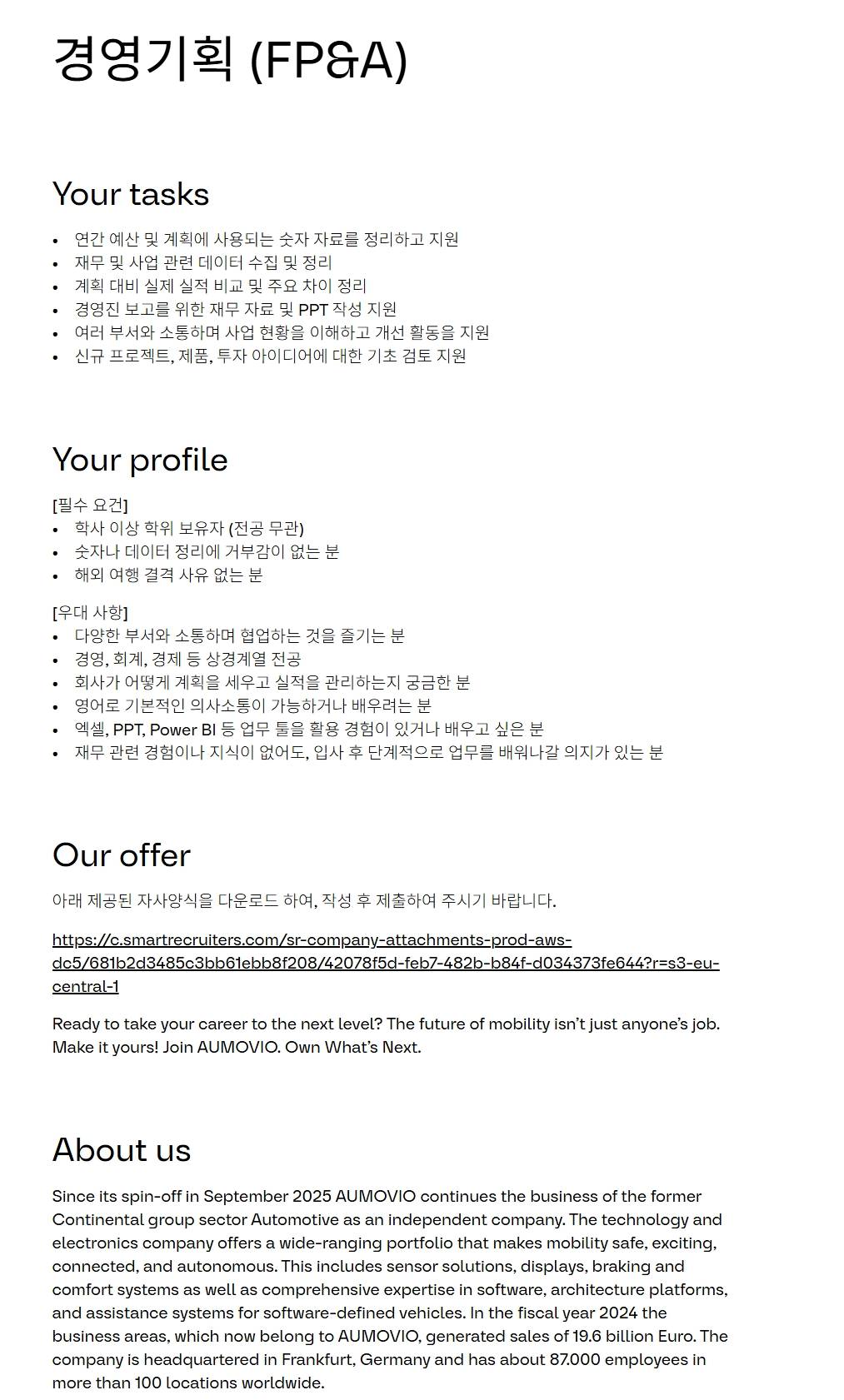 [아우모비오일렉트로닉스] 경영기획 (FP&A)